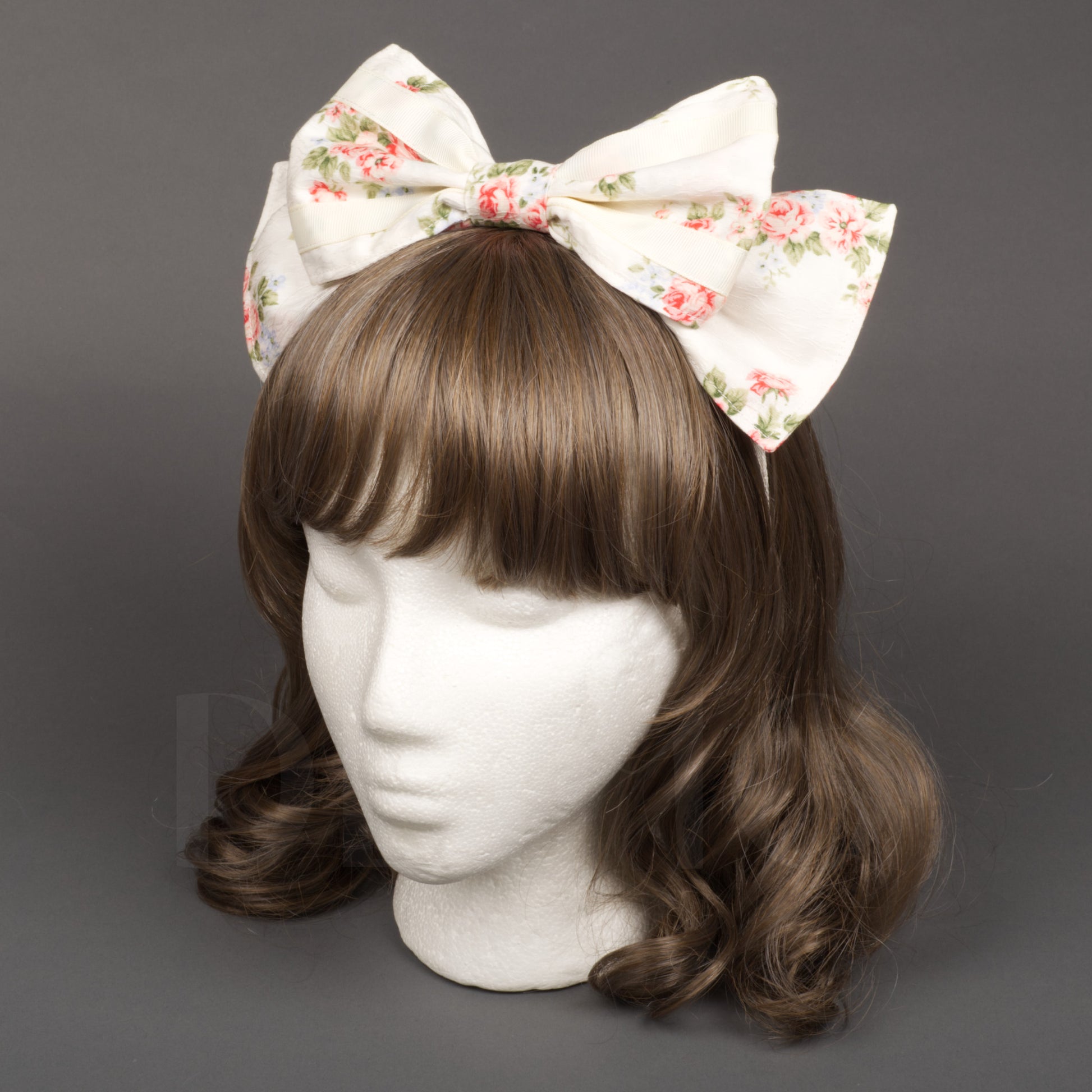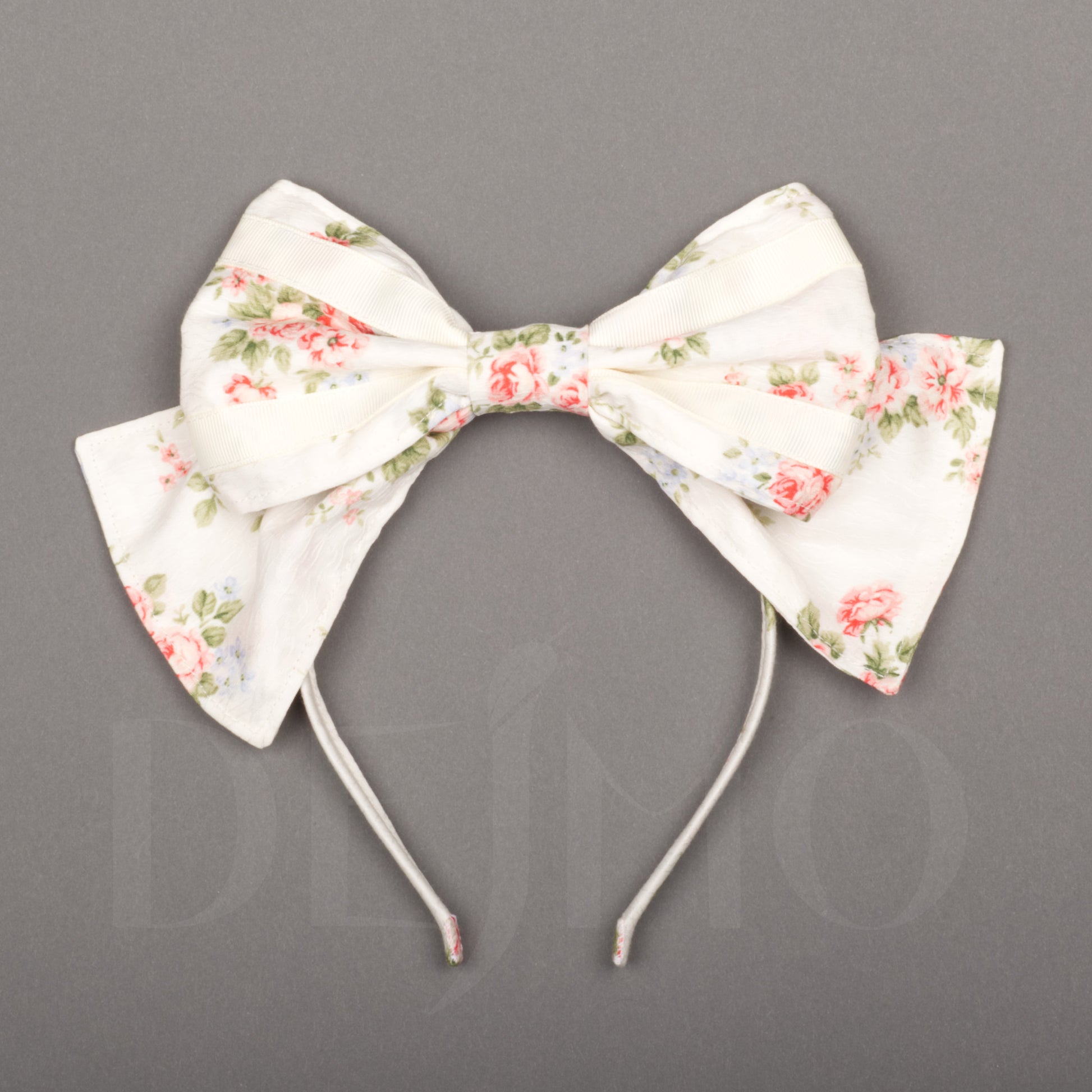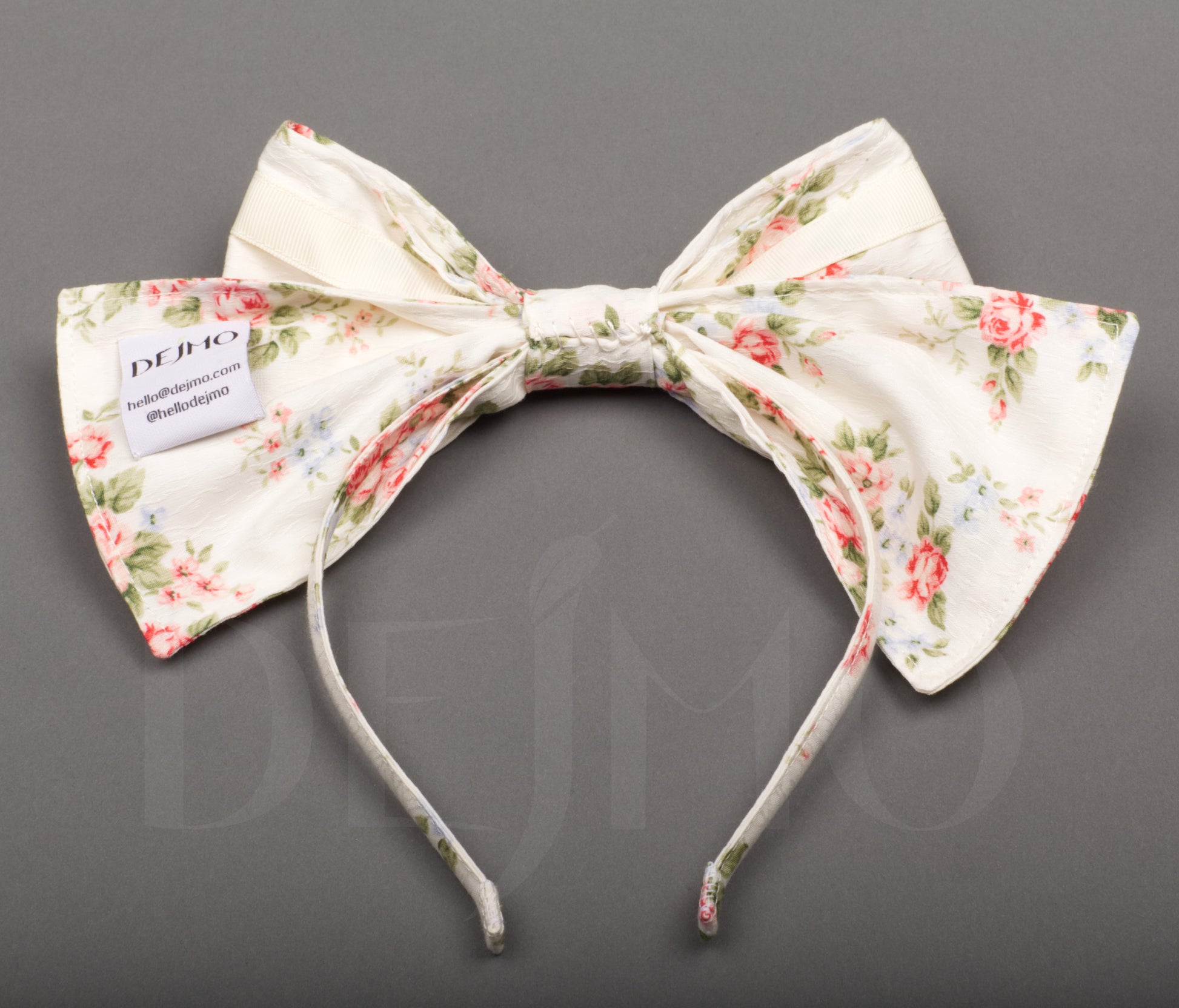 Top part of the bow is reinforced with wire, so you can shape the bow in any way you'd like. Headband is metal and covered with the same fabric as the bow.