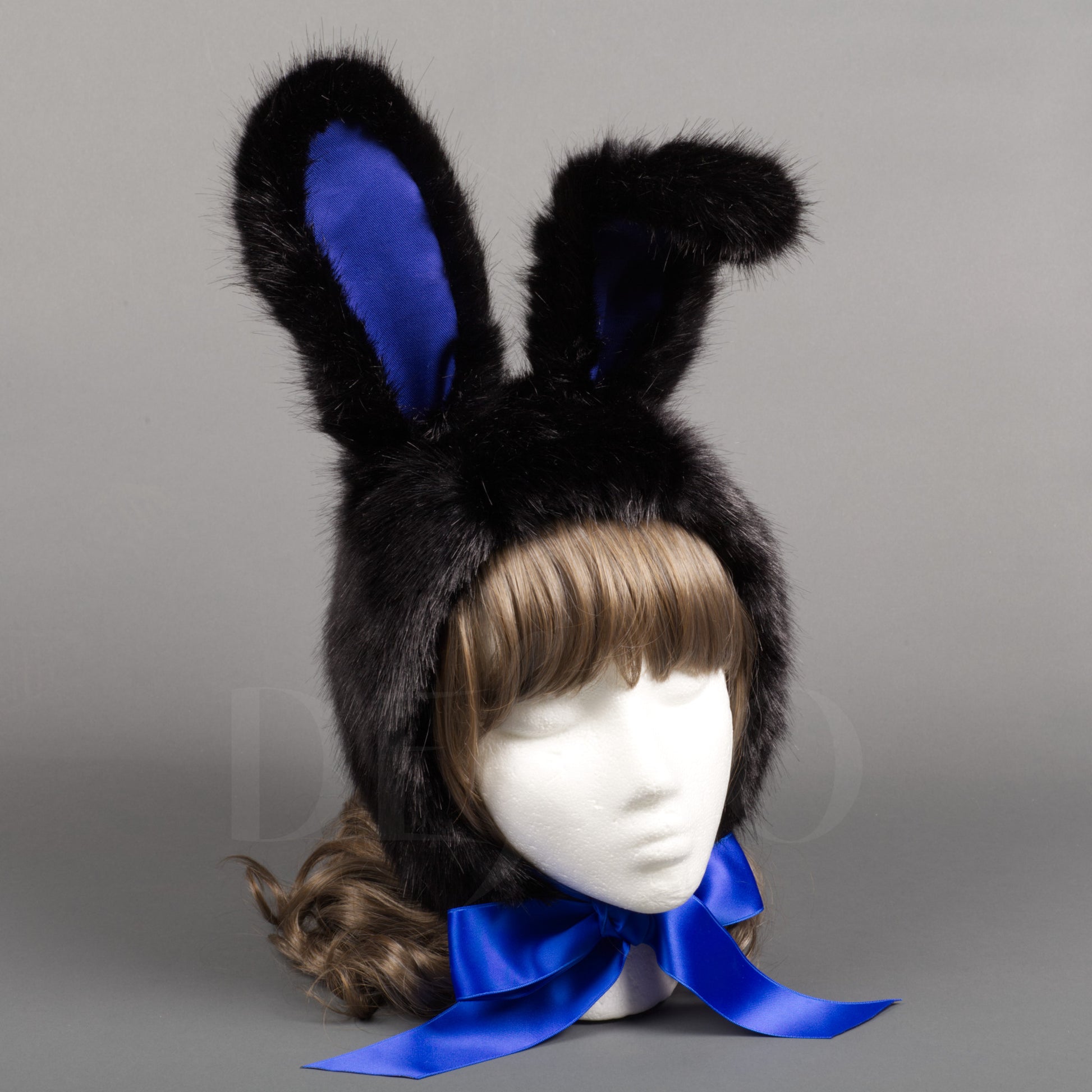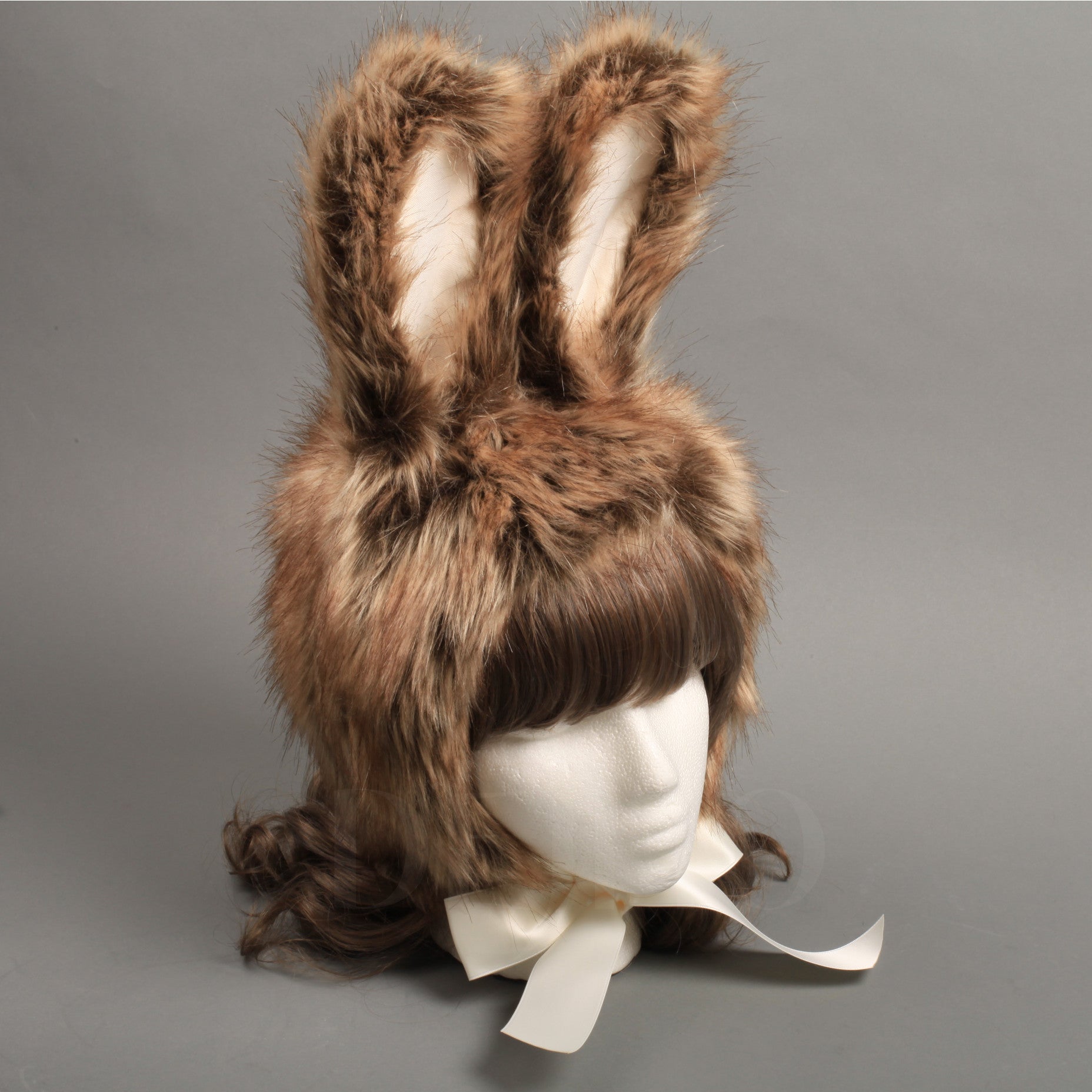 Made from high quality faux fur, cotton twill, polyester lining and polyester satin ribbon. Steel wire inside the ears, adjust their shape to your preference!