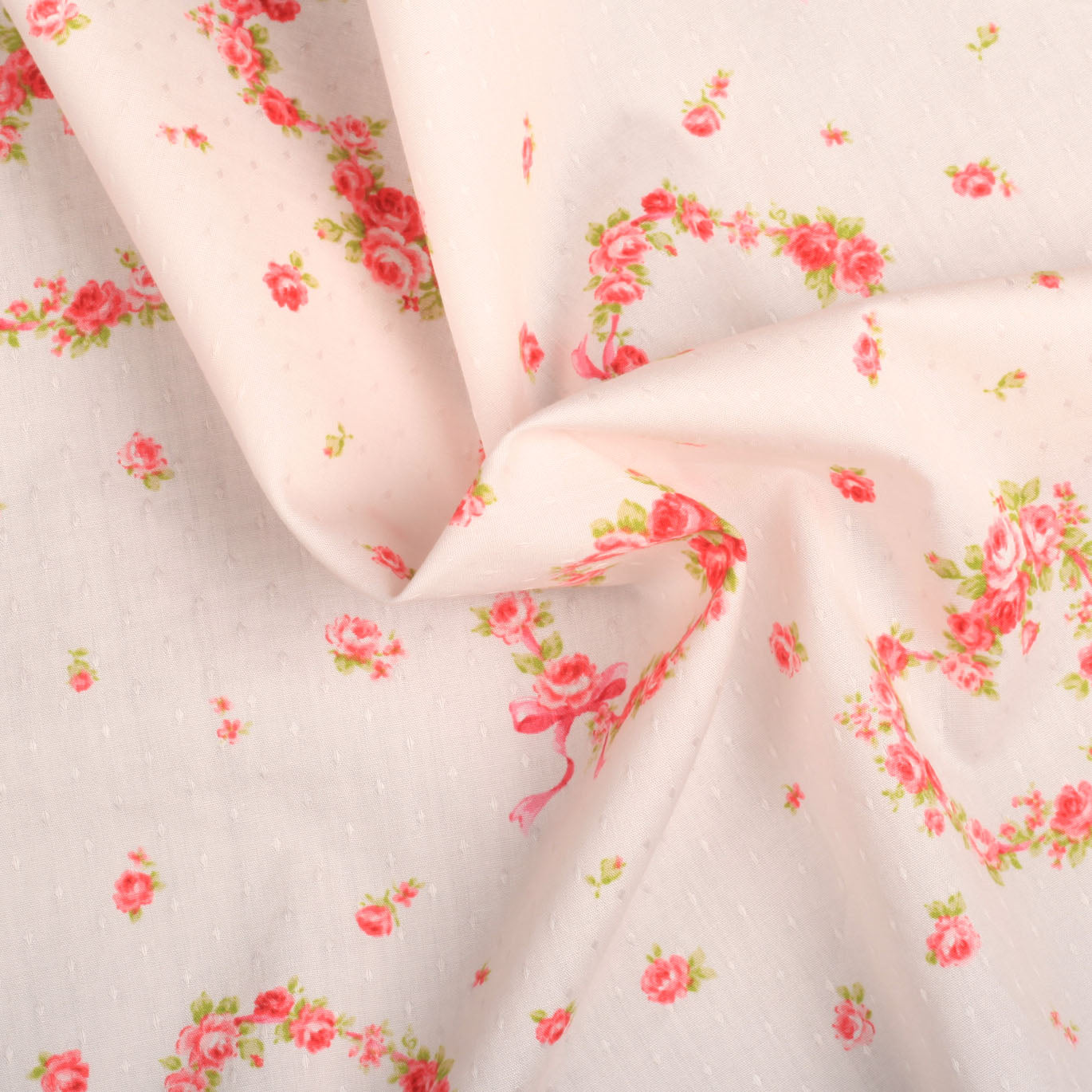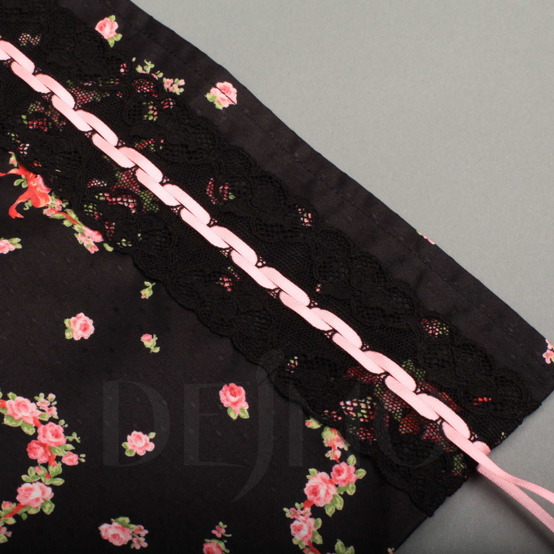 100% cotton fabric, lace is a cotton/nylon mix, ribbon is 100% polyester.