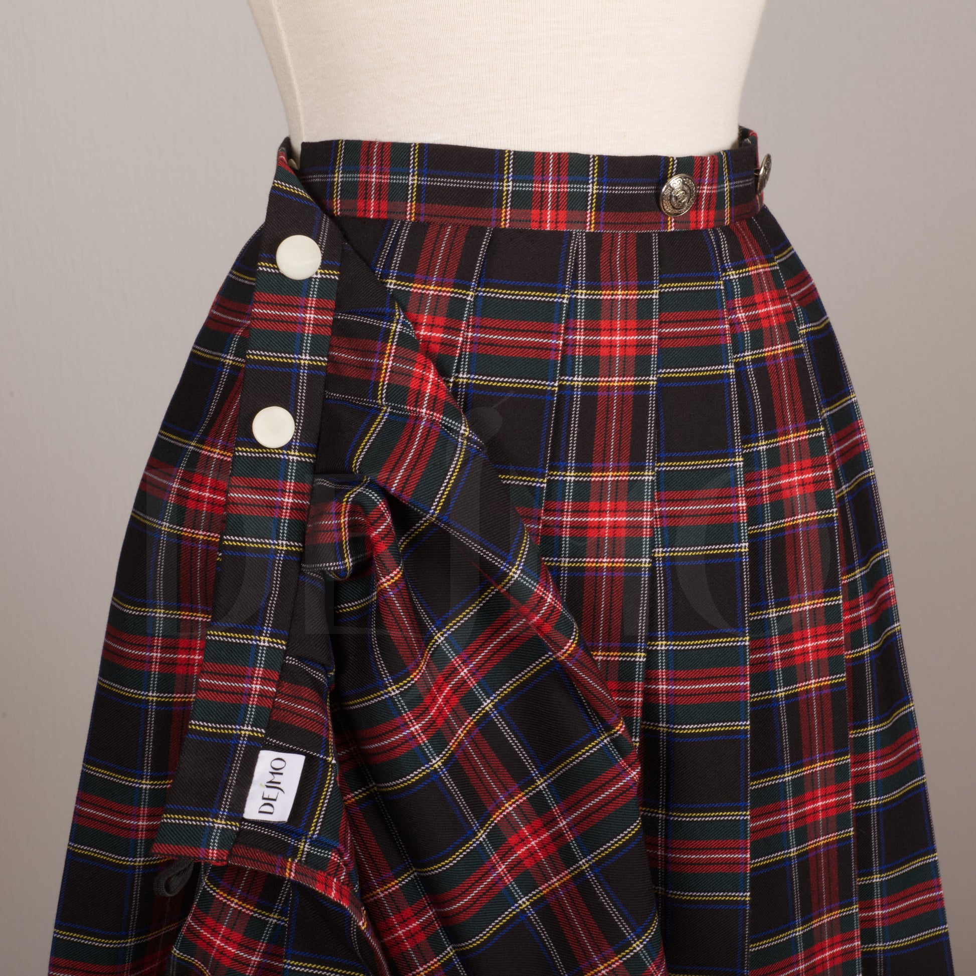 Plaid Wrap Skirt with Buttons