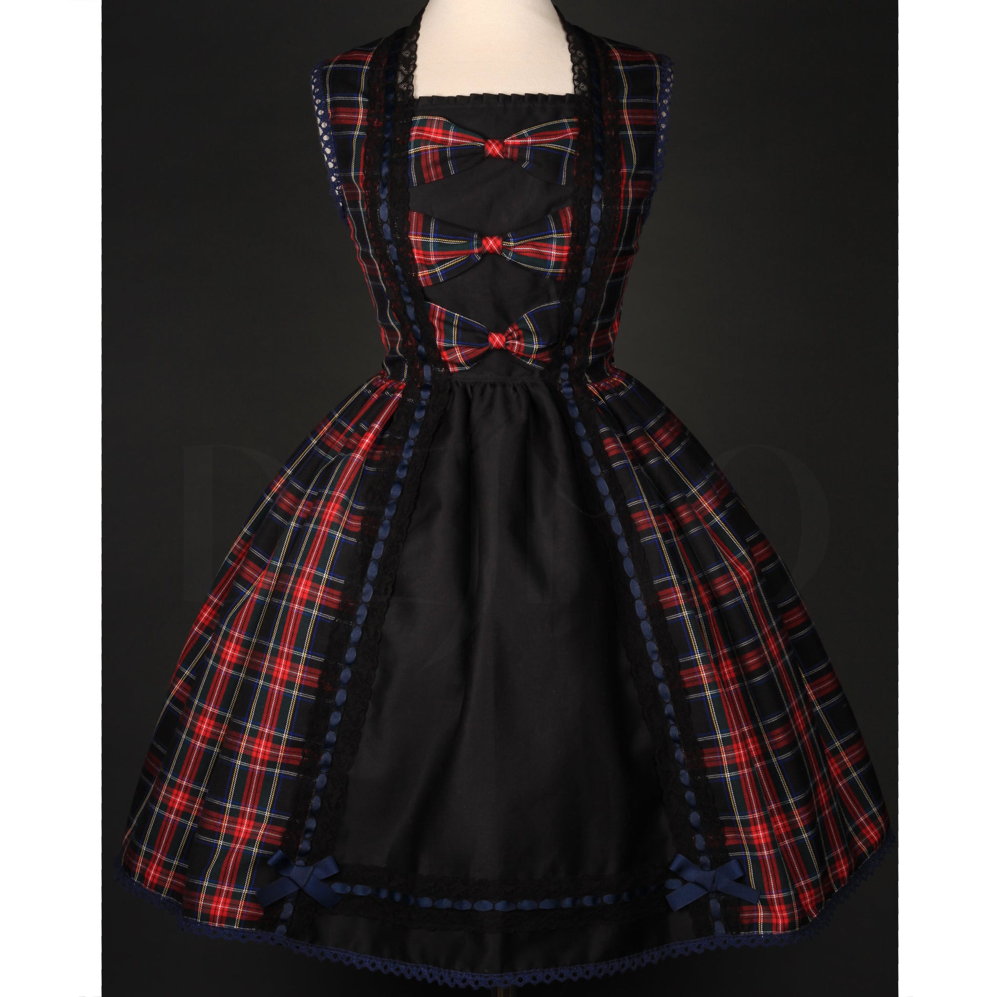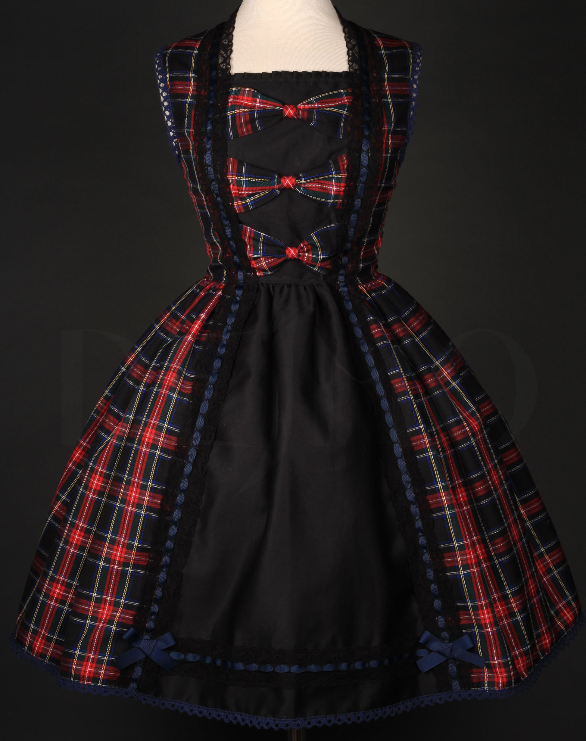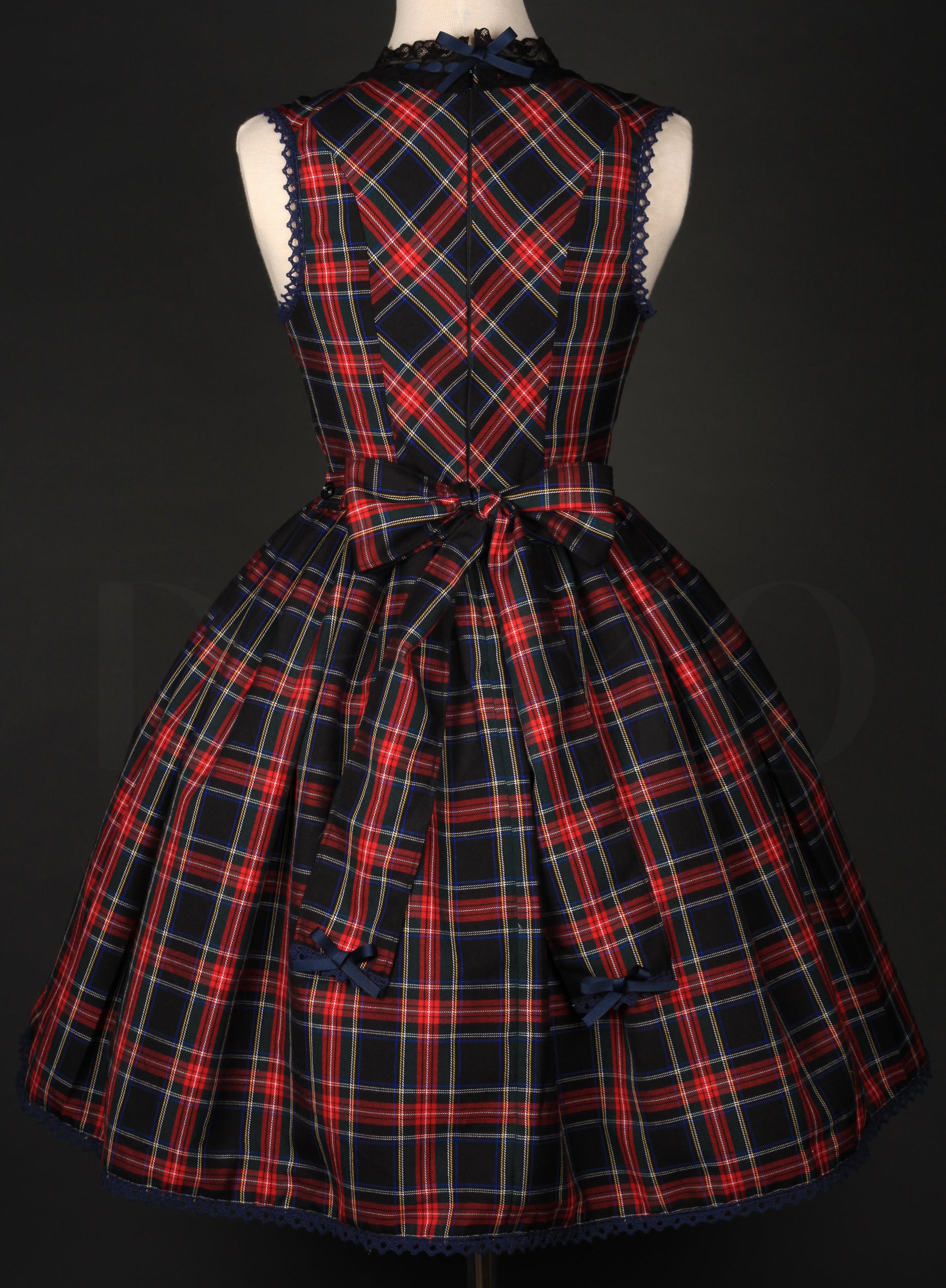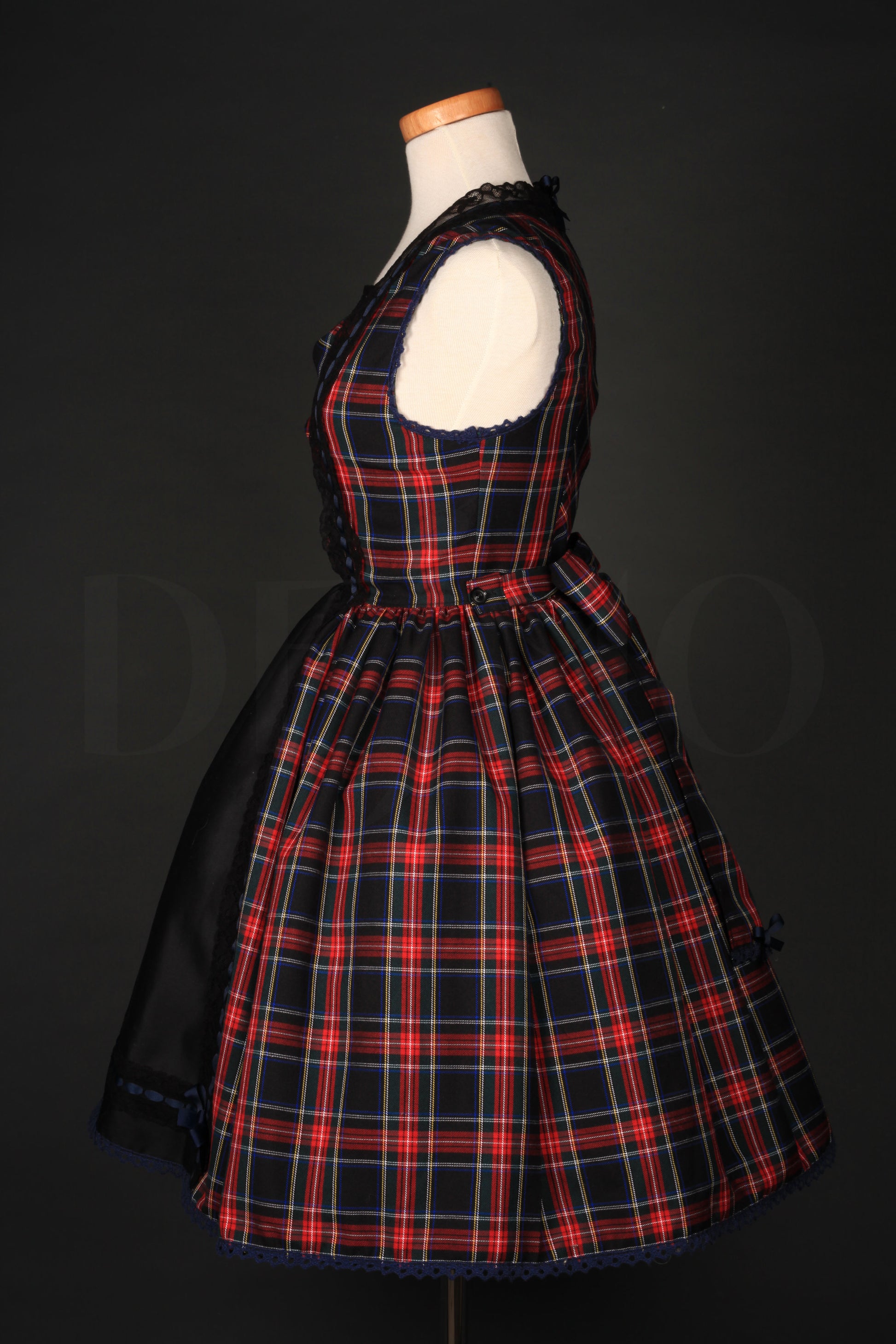 Sleeveless dress made from deadstock tartan fabric, Japanese cotton twill and beautiful cluny lace. Fully lined.